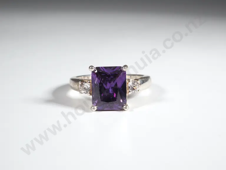 Sterling Silver & Purple Stone Ring Flanked By White Stones Estimate: $50 - $100