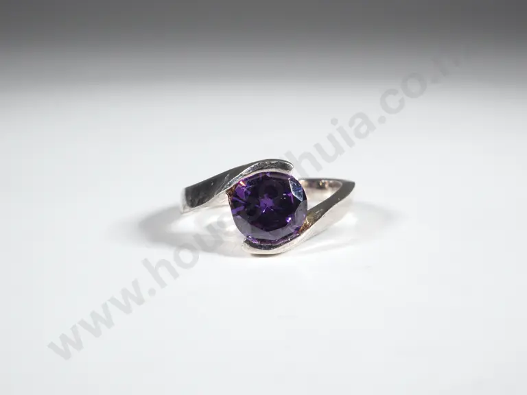 Sterling Silver Crossover & Round Amethyst Coloured Ring Estimate: $50 - $100