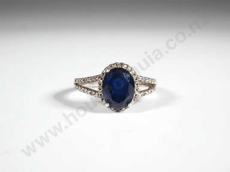 Sterling Silver & Synthetic Sapphire Ring w Stones Estimate: $50 - $100
