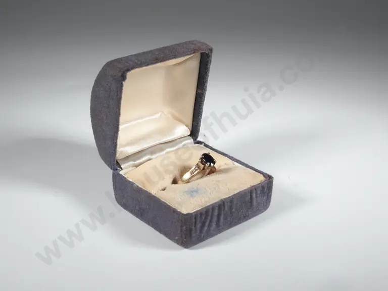 9ct Gold Ring with Single Blue Stone Flanked By White Stones Estimate: $150 - $200