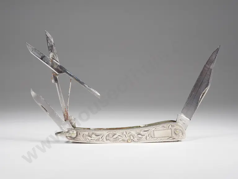 Vintage Sterling Silver Cased Pocket Knife w Engraved Decoration Estimate: $40 - $80