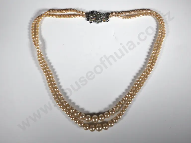 Double Pearl Necklace w Ornate Clasp 40mm Estimate: $40 - $80