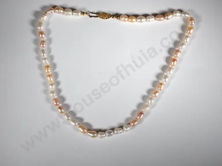 String Of Individually Knotted Freshwater Pearls w Gilt Clasp Estimate: $40 - $80
