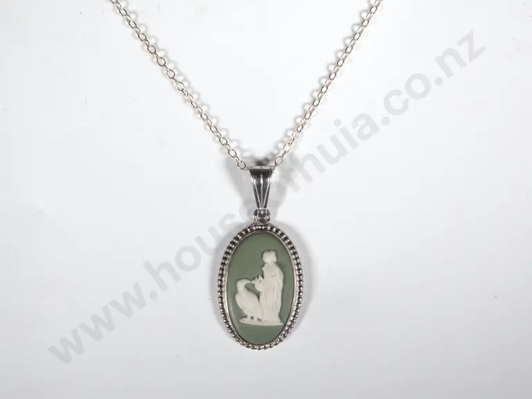 Silver Mounted Green Oval Wedgwood Pendant On a Silver Chain Estimate: $30 - $50