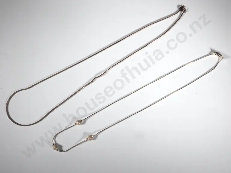 Sterling Silver Snake Chain Interspersed with Three Balls Together With Another Sterling Chain Estimate: $40 - $60