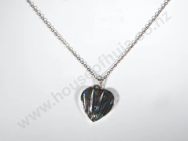 Sterling Silver Paua Shell Cross with Chain & A Facetted Amethyst Heart Shaped Pendant On Chain Estimate: $40 - $80