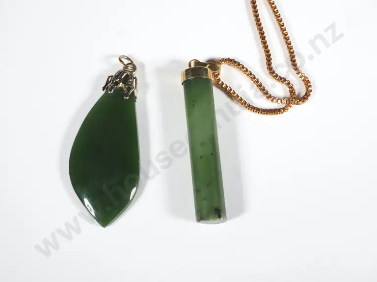 Two Greenstone Pendants. One with Box Link Chain Estimate: $100 - $200