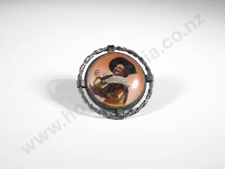 Sterling Silver & Porcelain Brooch, "The Laughing Cavalier" Estimate: $20 - $40