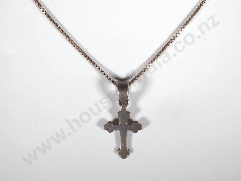 Sterling Silver Box Link Chain & Small Cross Estimate: $40 - $80