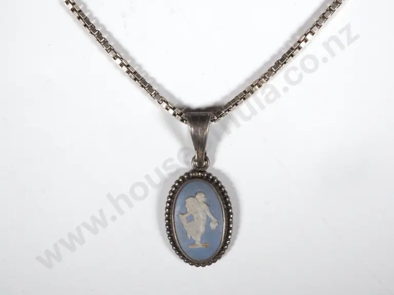 Wedgwood Blue Jasperware Pendant & Sterling Silver Box Link Chain Estimate: $40 - $80