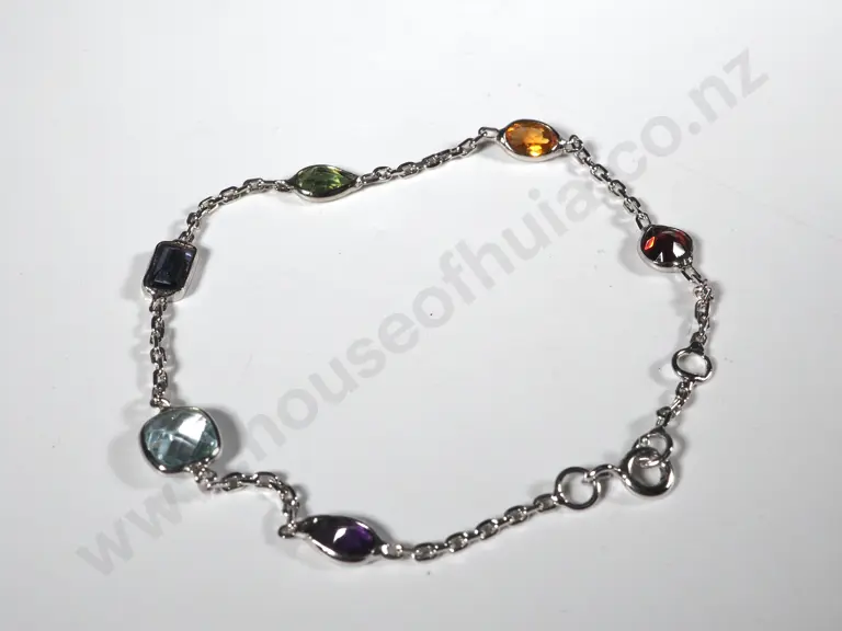 Delicate Sterling Silver Bracelet Interspersed with A Variety Of Gems Estimate: $40 - $80