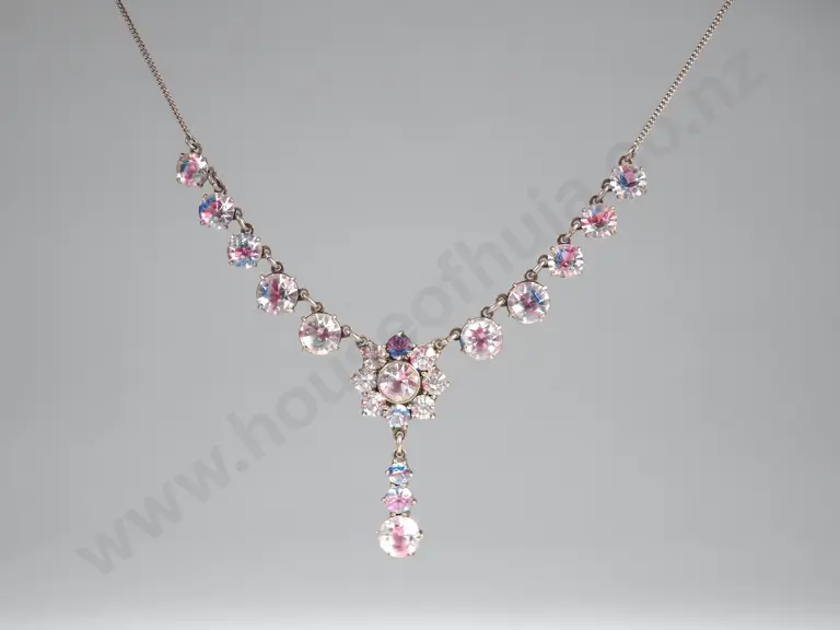 Edwardian Sterling Silver Rainbow Crystal Necklace with Central Drop Pendant Estimate: $50 - $100