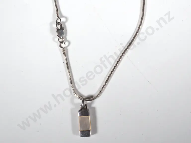 Sterling Silver Snake Chain w MOP & Silver Pendant Estimate: $40 - $80