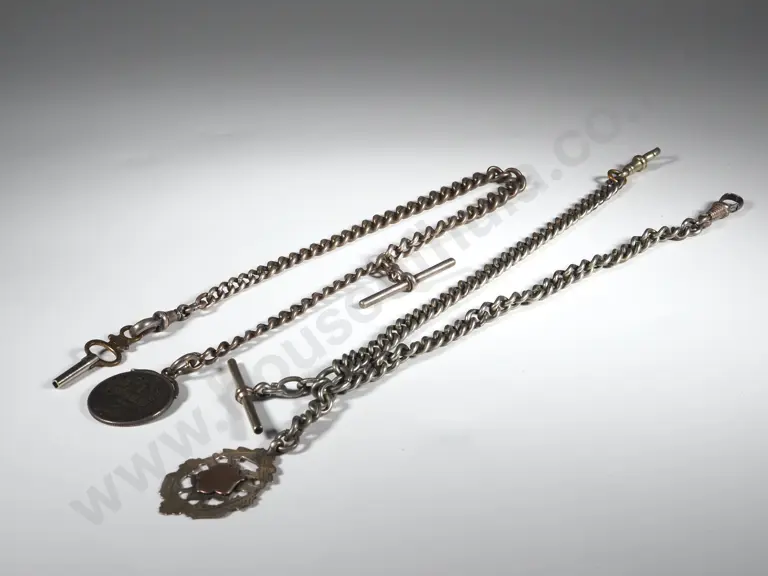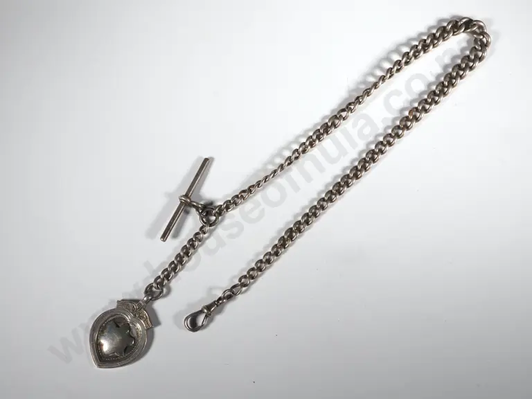 Sterling Silver Watch Chain with T Bar & Medallion Estimate: $80 - $120