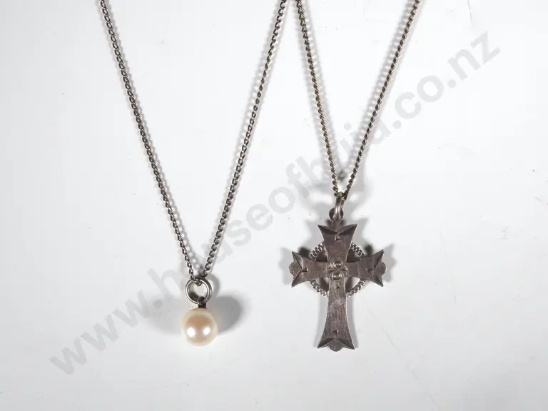 Sterling Silver Cross On Chain & A Pearl Pendant with Chain Estimate: $40 - $80