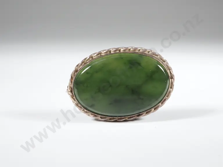 Oval Greenstone & Sterling Silver Brooch. Estimate: $40 - $80