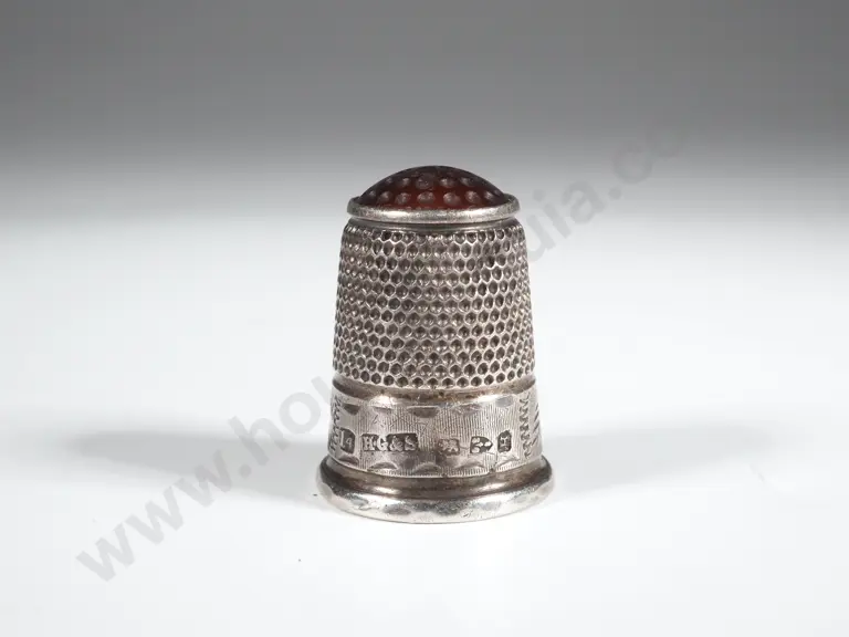 Sterling Silver Thimble with Red Cabochon Tip . Maker HG&F Estimate: $40 - $60
