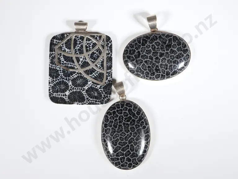Three Sterling Silver & Faux Fossil Pendants Estimate: $50 - $100