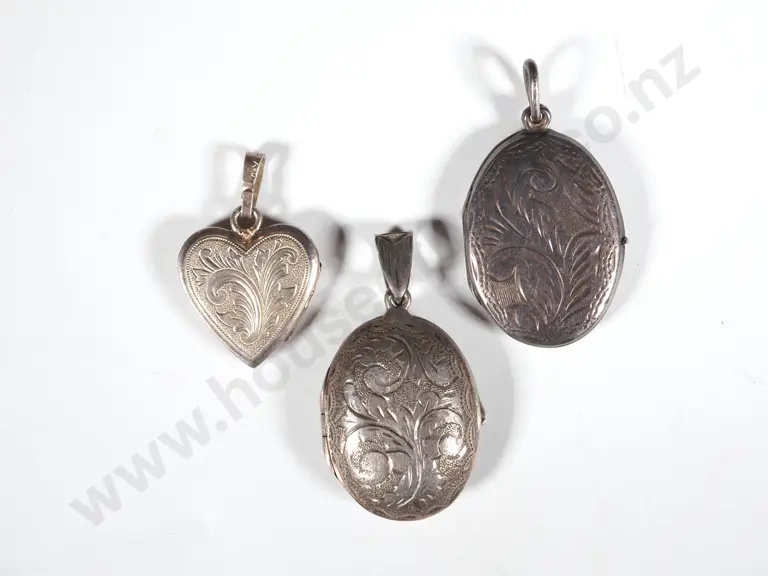 Three Sterling Silver Lockets with Allover Engraving Estimate: $40 - $60