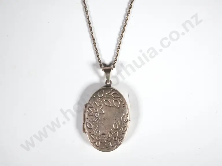 Sterling Silver Locket & Chain. Locket Decorated w Flowers & Leaves Estimate: $40 - $60