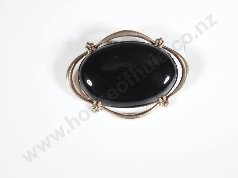 Sterling Silver & Oval Black Stone Brooch Estimate: $30 - $50