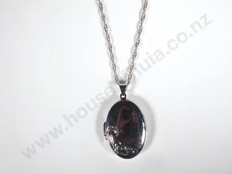 Sterling Silver Oval Locket with Engraving On Chain Estimate: $50 - $100