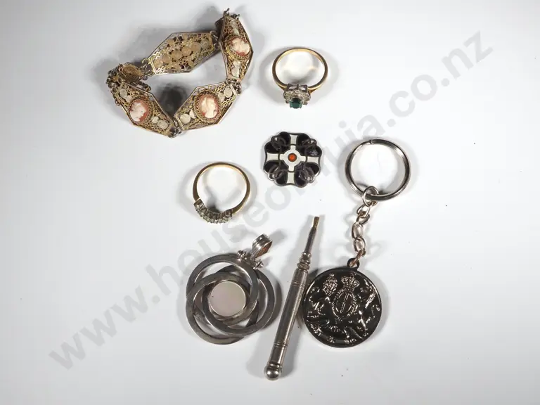Filigree & Cameo Bracelet, Double Sided Celtic Style Pendant, A St Christopher Keyring & A Vintage Propelling Pen Estimate: $40 - $80