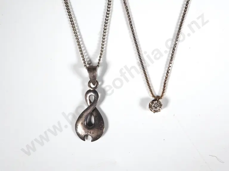 Sterling Silver Box Link Chain & White Stone Pendant & a Sterling Silver Infinity Pendant w Chain Estimate: $40 - $80