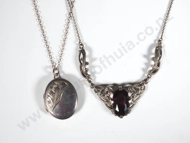 Sterling Silver & Oval Amethyst Pendant On Silver Chain Estimate: $50 - $100