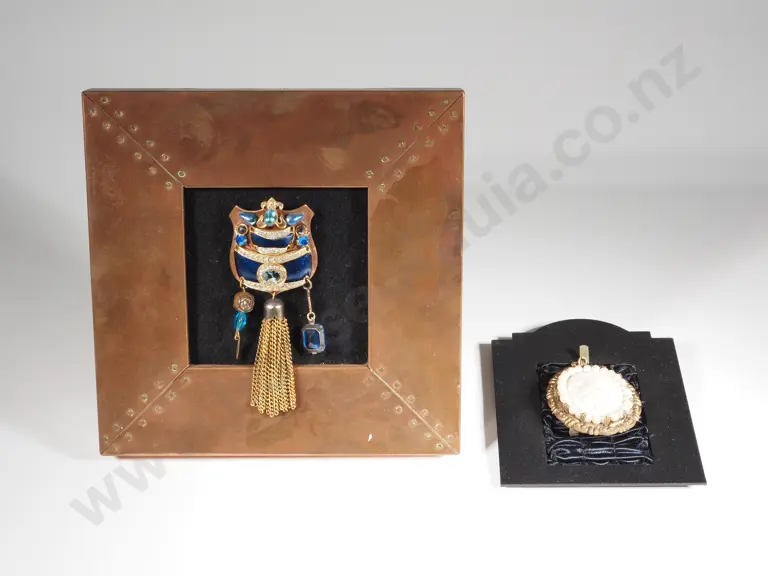 Two Original Artworks by Gail Trewenack Including a Black Frame with Cameo Brooch