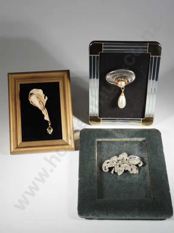 Three Original Artworks by Gail Trewenack Including &Silver & Gold Plate Frame with Silver Plate & Pearl Brooch