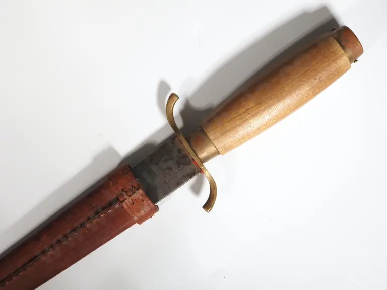 Herder Hunting Dagger w Wooden Handle, Brass Mount & Leather Sheath.