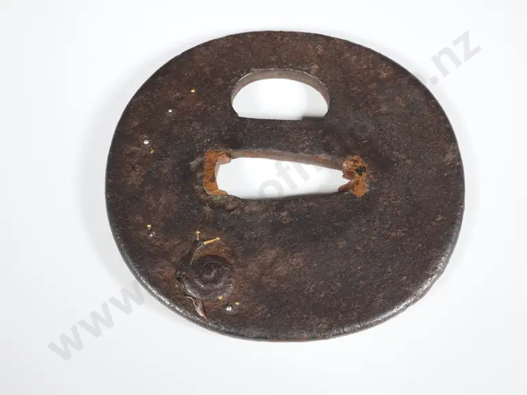 Japanese Iron Tsuba w Gilt Snail Decoration & Silver Dew Drops On Leaves Estimate: $40 - $80