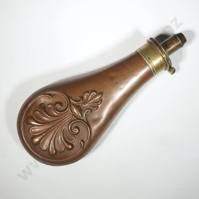 Embossed Copper/Brass Powder Flask.