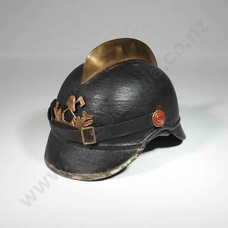 19th Century Leather Fire Fighter Helmet w Brass Comb.