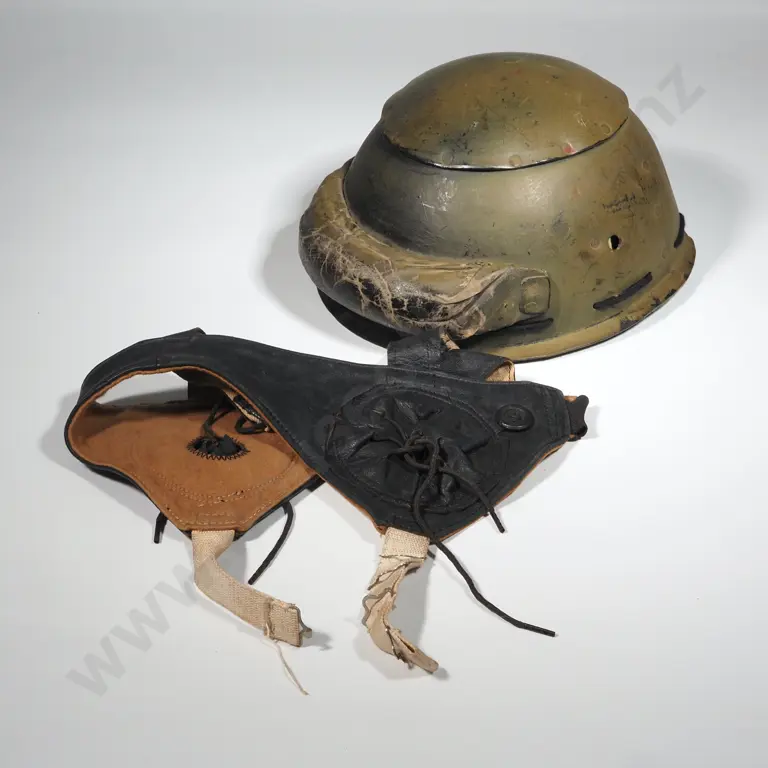 WWII Tanker's Fibre Helmet Painted Pacific Camouflage Green.