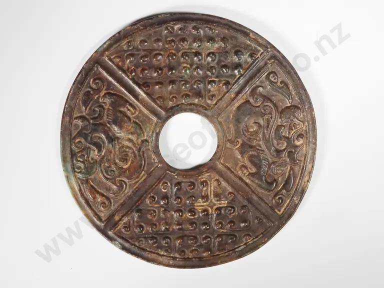 Intricately Carved Ancient Chinese Bi Disc: Purported to have been bought back post-war