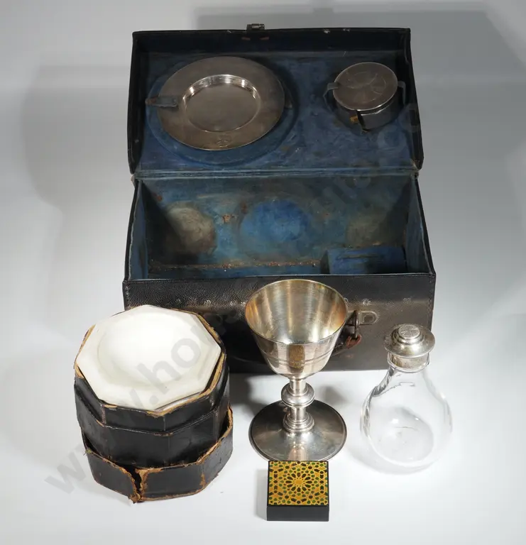 NZ Military Chaplain to the Forces Padres Portable Communion Cased Set - Some Items Military Marked