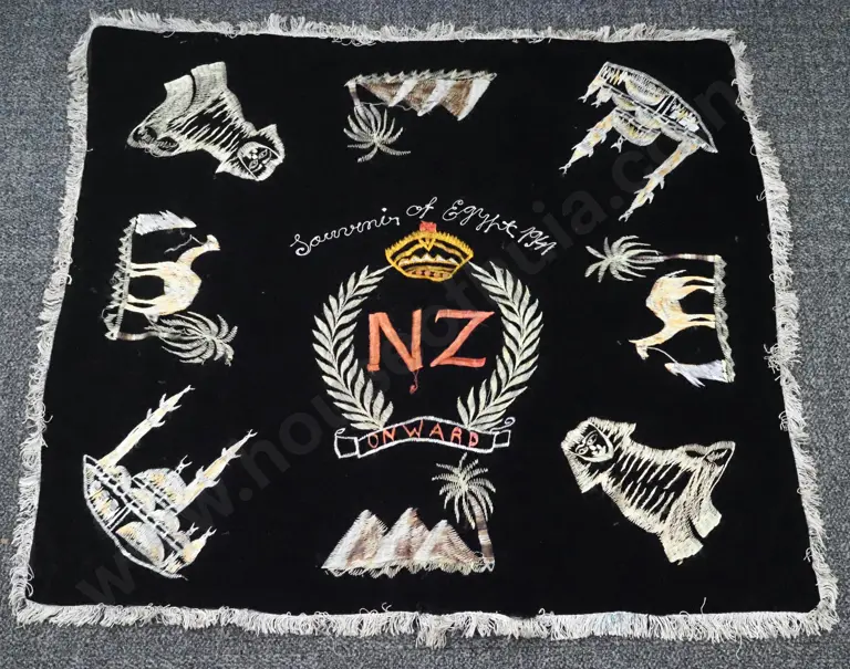 Hand Embroidered NZ Onward Souvenir of Egypt 1941 Table Cloth.