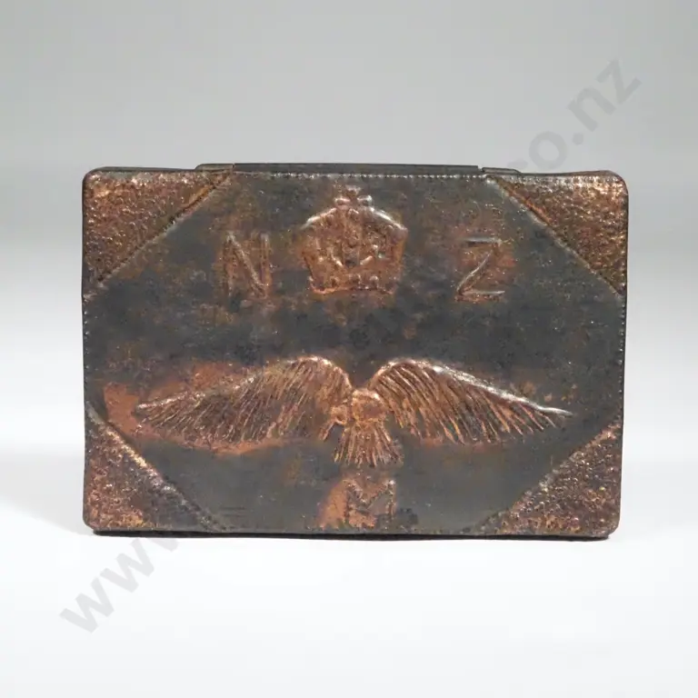 WWII NZRAF Trench Art Pressed/Ornamented Tobacco Tin.