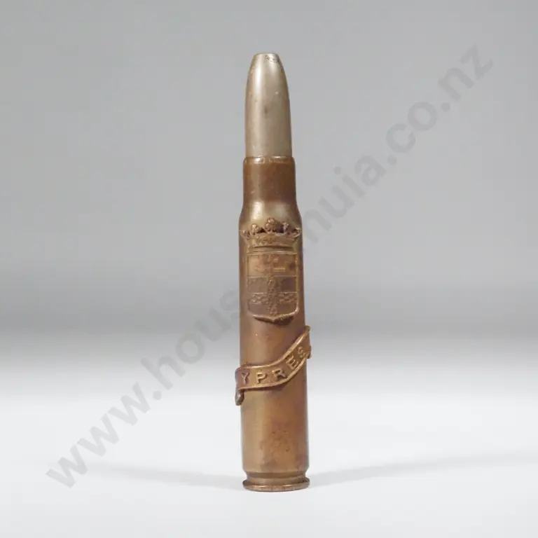 8mm Cartridge Case Souvenir of Ypres w Bullet Knife.