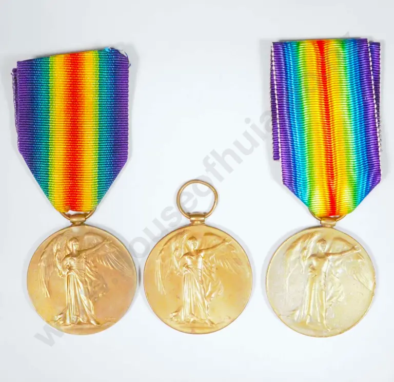 Three WWI Victory Medals - One Unnamed, Two Names Erased.