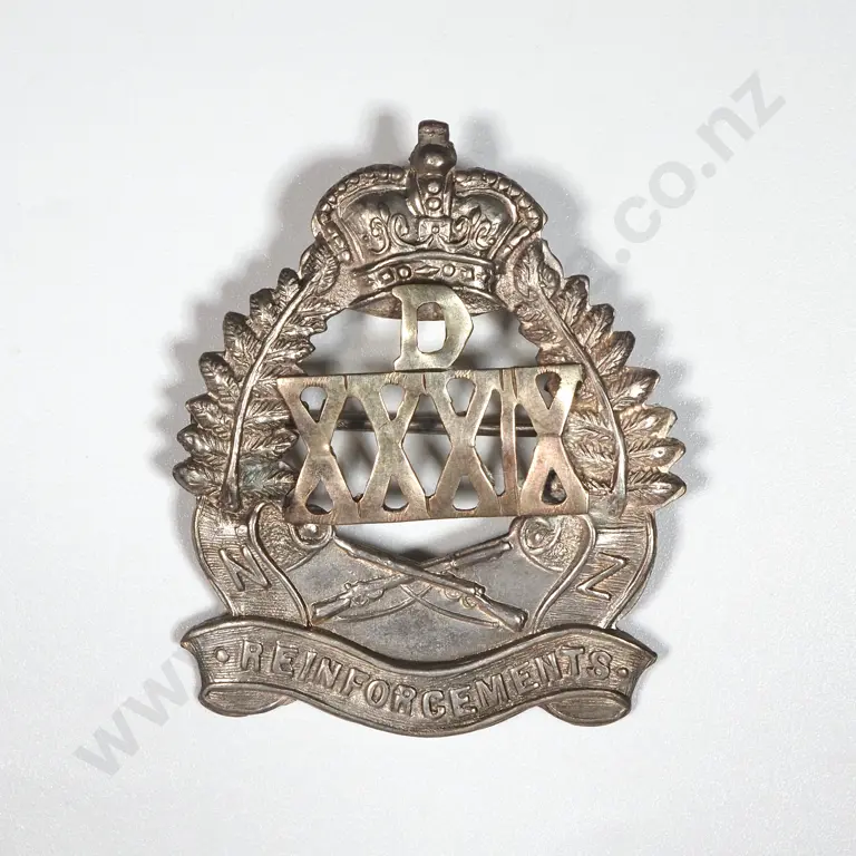 Royal NZ Infantry Regiment Bayonet Collar Badges & One Hat Badge (No lugs).