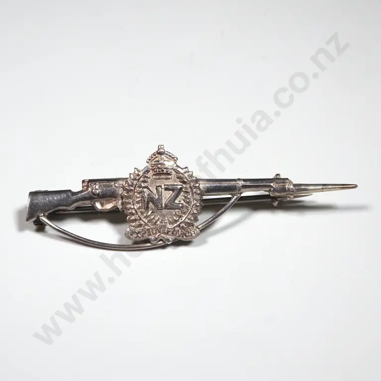 WWI Sterling Silver Rifle Sweetheart Badge w NZ Expeditionary Force Badge.
