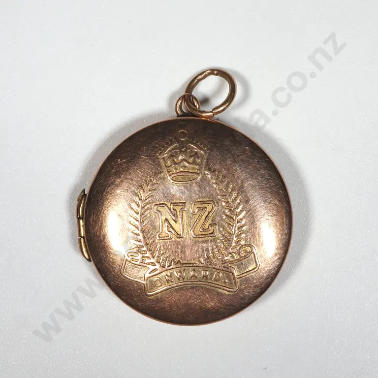 9ct Gold Locket w NZ Onward Badge.