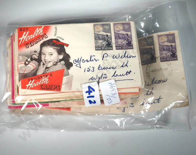 Assorted Lot of Addressed & Franked Children's Health Stamp Envelopes.