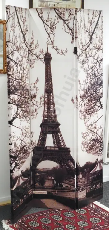 Three Panelled Canvas Screen With View of The Eiffel Tower