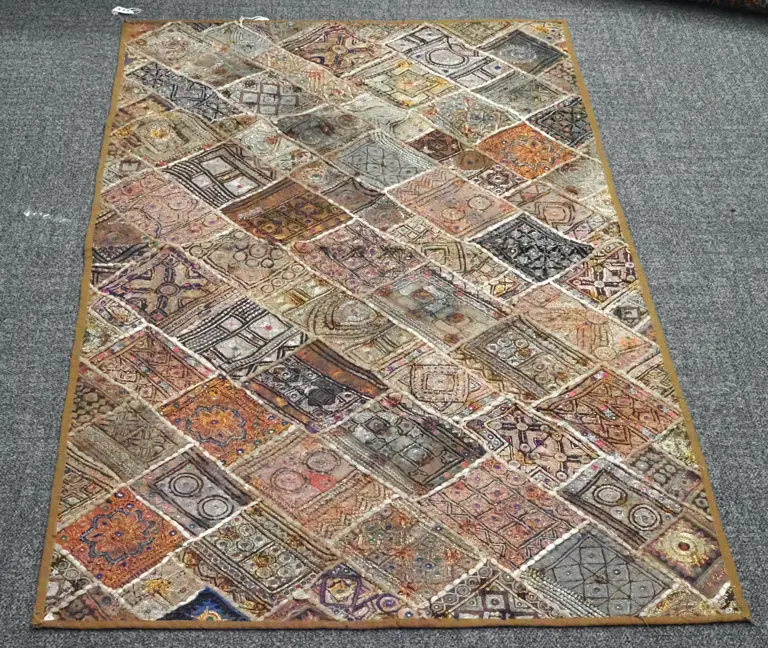 Vintage Banjara Large Patchwork Shawl With Finely Embroidered Metallic Threads.