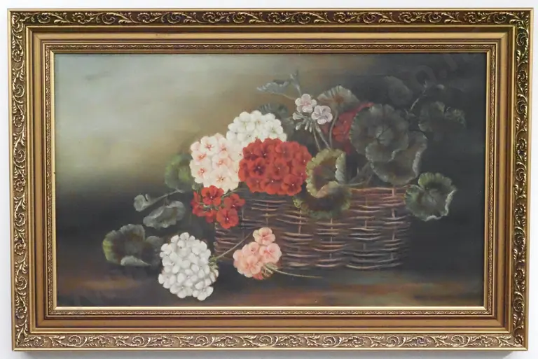 Still Life - Flowers in a Cain Basket. Oil on Windsor & Newton Canvas.