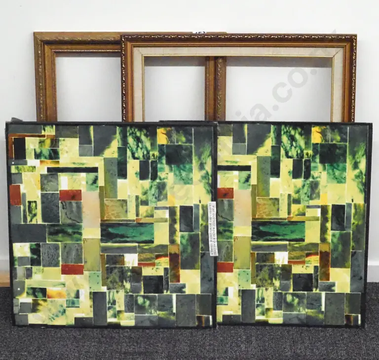 Two Boards Displaying a Small Selection of the Colours that Occur in NZ Jade. Two Frames.